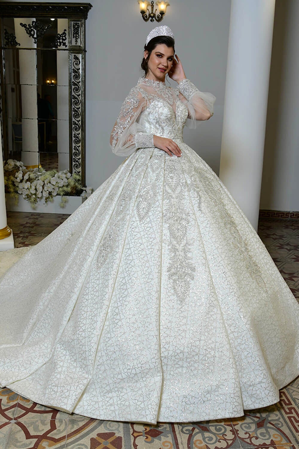 Bishop Kol Gümüş İşlemeli Kalp Yaka Kuyruklu Prenses Gelinlik:27+ yıllık tecrübemiz ve binlerce model zarafetiyle, her detayda özen ve ustalık barındıran bu eşsiz tasarım, ölçülerinize özel işçilikle hayalinizdeki anlara eşlik ediyor. Müşteri desteğimiz ve taksitli ödeme kolaylıklarımızla, A’dan Z’ye kusursuz bir deneyim Yeşim Gelinlik’te sizleri bekliyor!