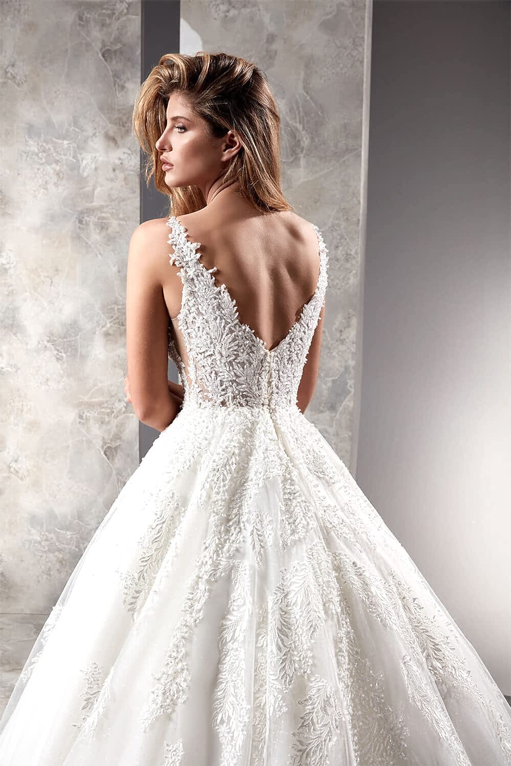 Dantel İşlemeli Sırt Dekolteli A Kesim Gelinlik