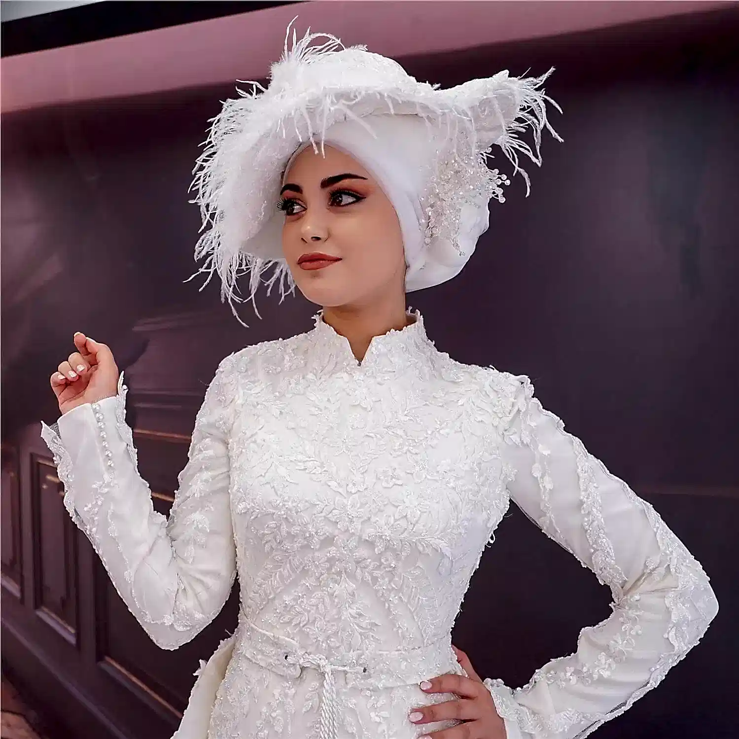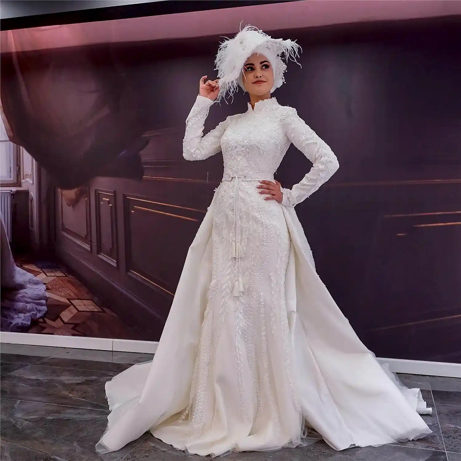 Demonte Etek Hakim Yaka Balık Tesettür Gelinlik