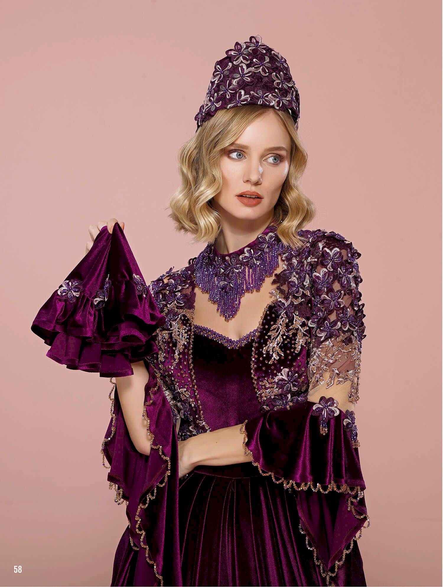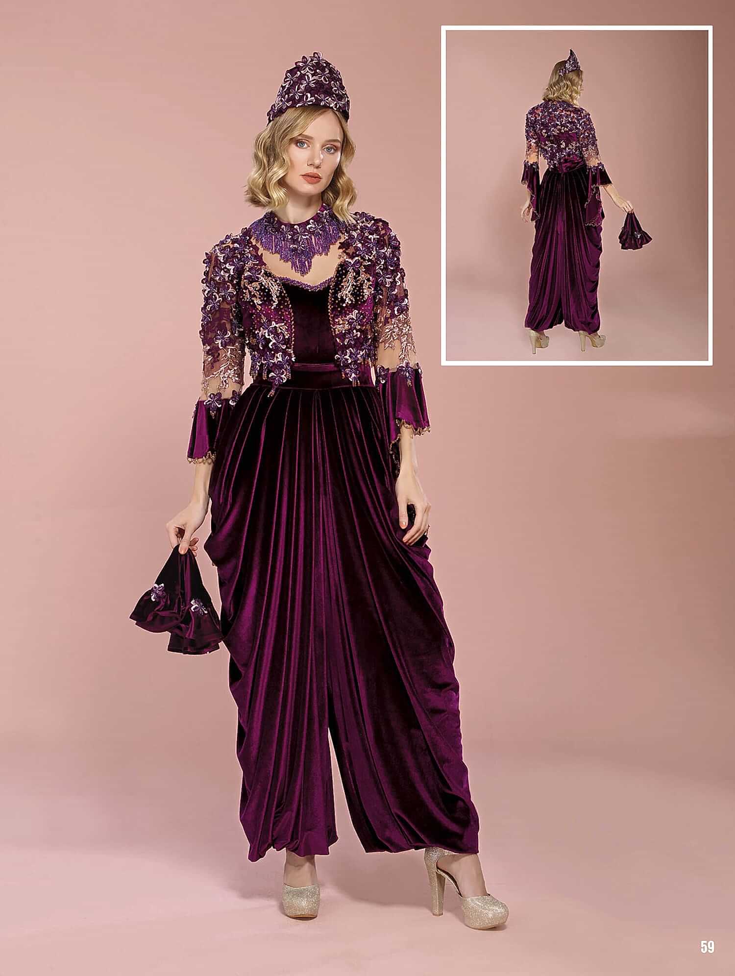 Mor Kadife Şalvarlı Kına Bindallı