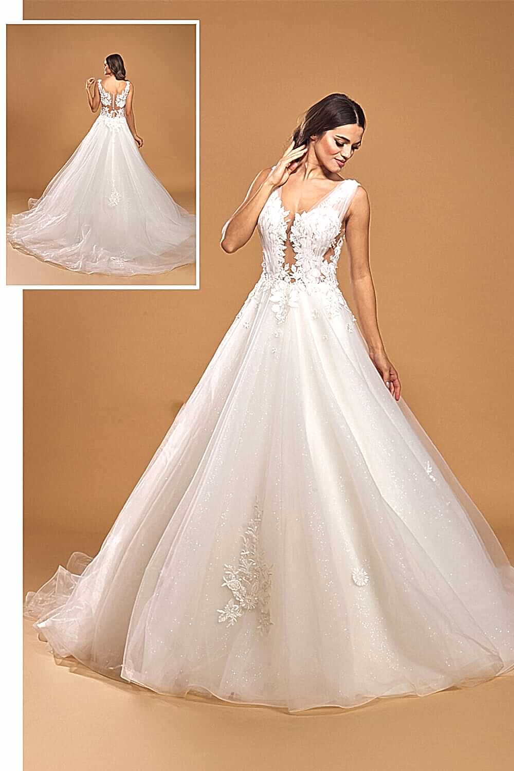 Transparan V Yaka Dekolteli A Kesim Gelinlik:27+ yıllık tecrübemiz ve binlerce model zarafetiyle, her detayda özen ve ustalık barındıran bu eşsiz tasarım, ölçülerinize özel işçilikle hayalinizdeki anlara eşlik ediyor. Müşteri desteğimiz ve taksitli ödeme kolaylıklarımızla, A’dan Z’ye kusursuz bir deneyim Yeşim Gelinlik’te sizleri bekliyor!