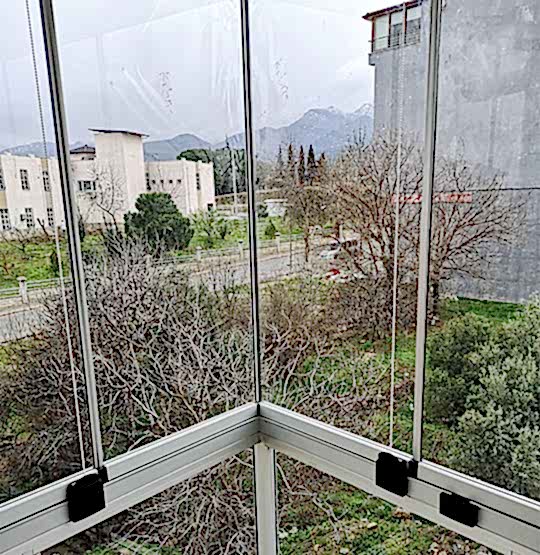 - Balkonlar ve eşikli mekân kapatmalar için uzun yıllar konforlu kullanım sunan tescilli tasarım